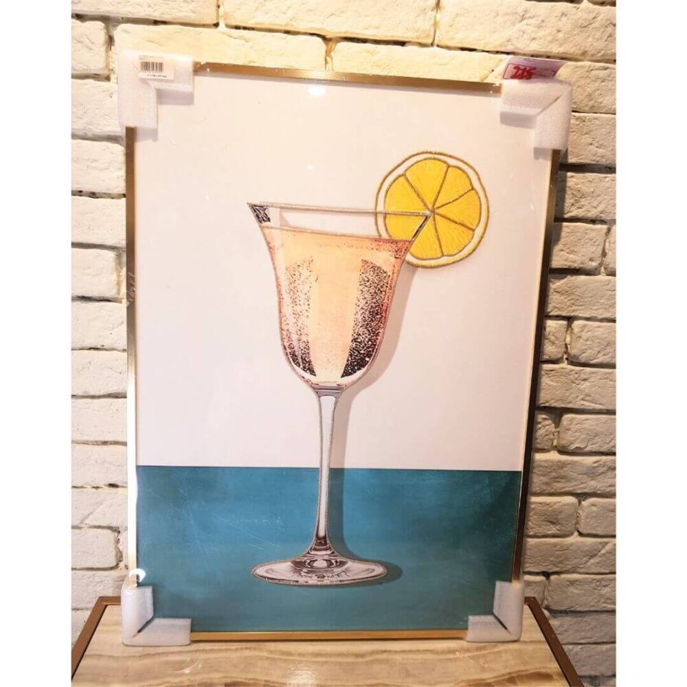 Wall decoration for office or home. The image is an abstraction with a cocktail glass Metal frame. Size: 70 cm x 50 cm.