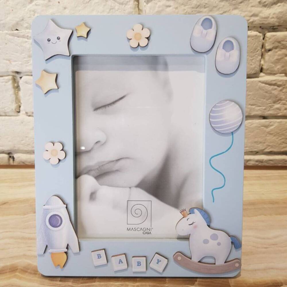 Vertikal. Ölçü: 12 x 17 sm. İstehsalçı: Mascagni Casa (İtaliya). Rəng: mavi (oğlanlar üçün). Çərçivədə: "Körpə" yazısı, ulduzlar, çiçəklər, raket, at, ayaqqabı, şar. Çərçivənin arxası qara məxmərlə haşiyələnib.